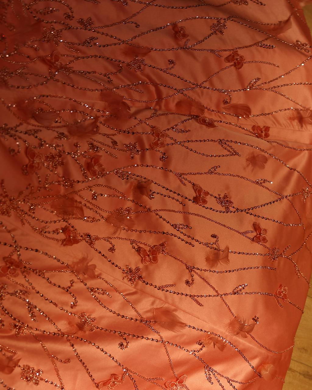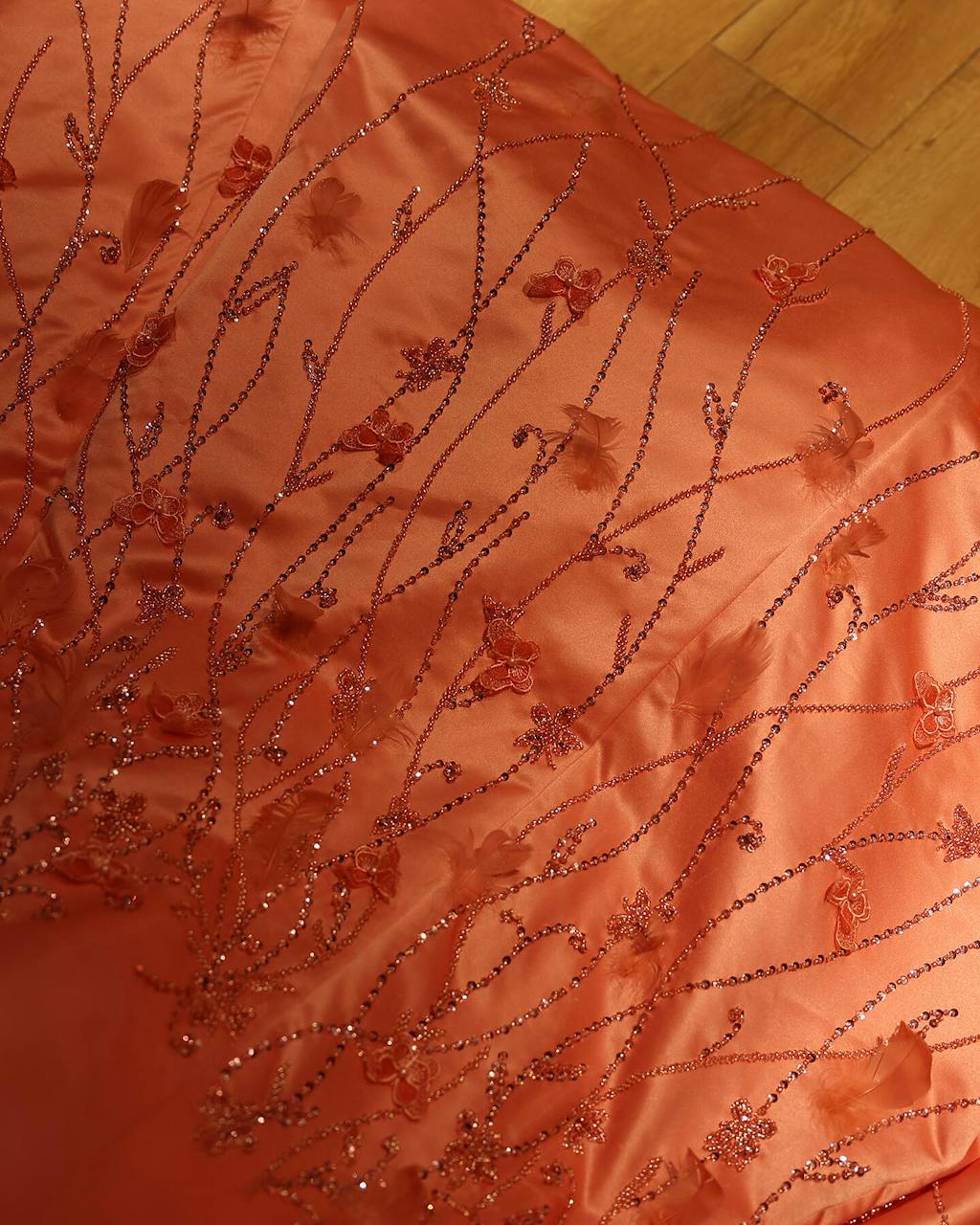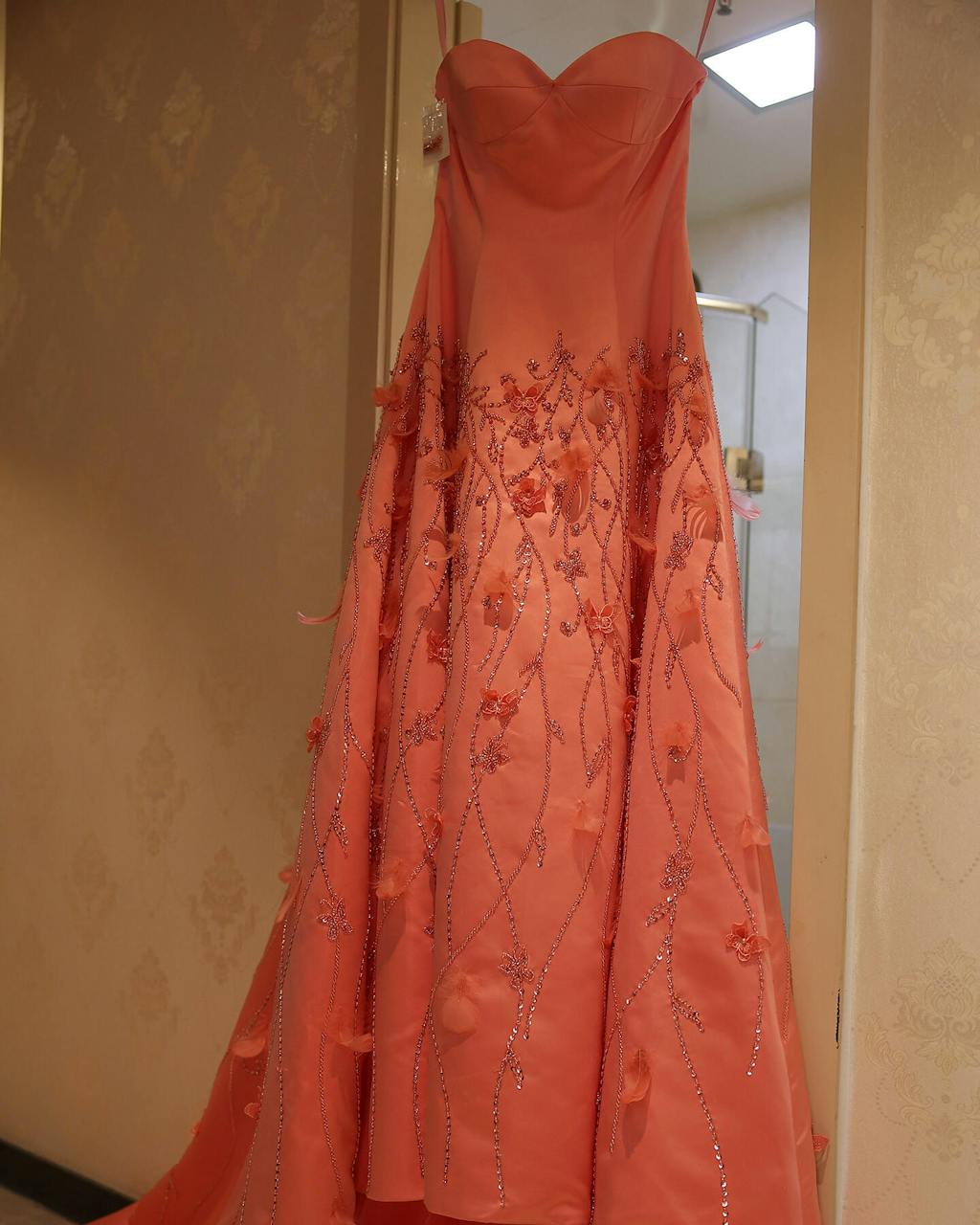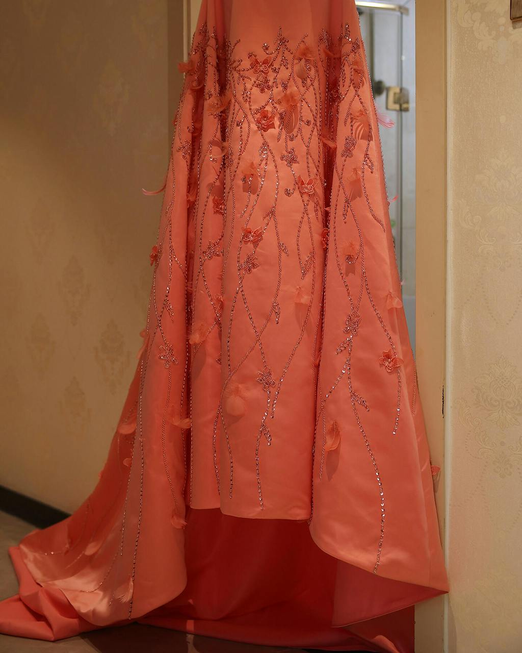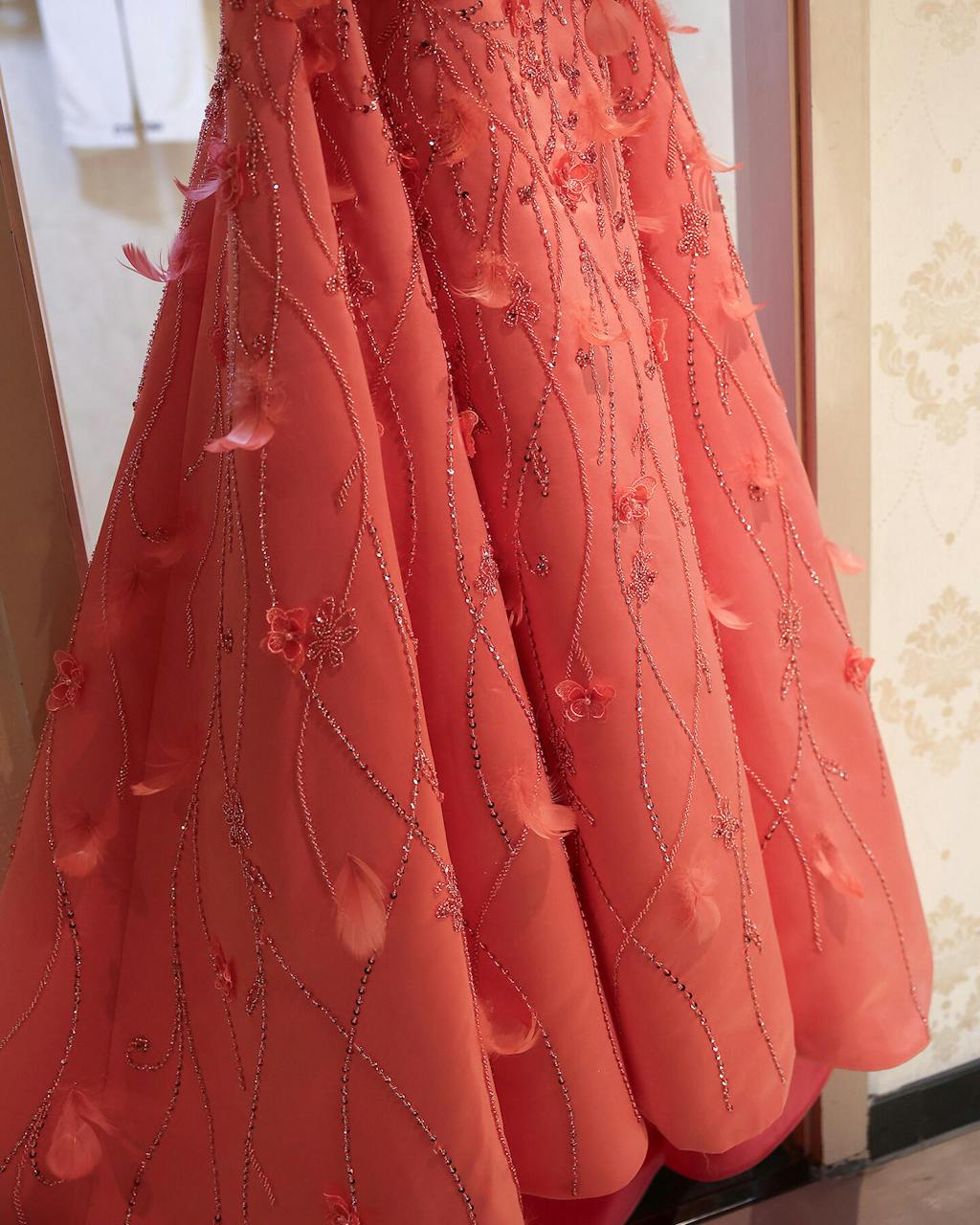 Luxury 3D Flowers Feathers Coral Pink Evening Dress SS470