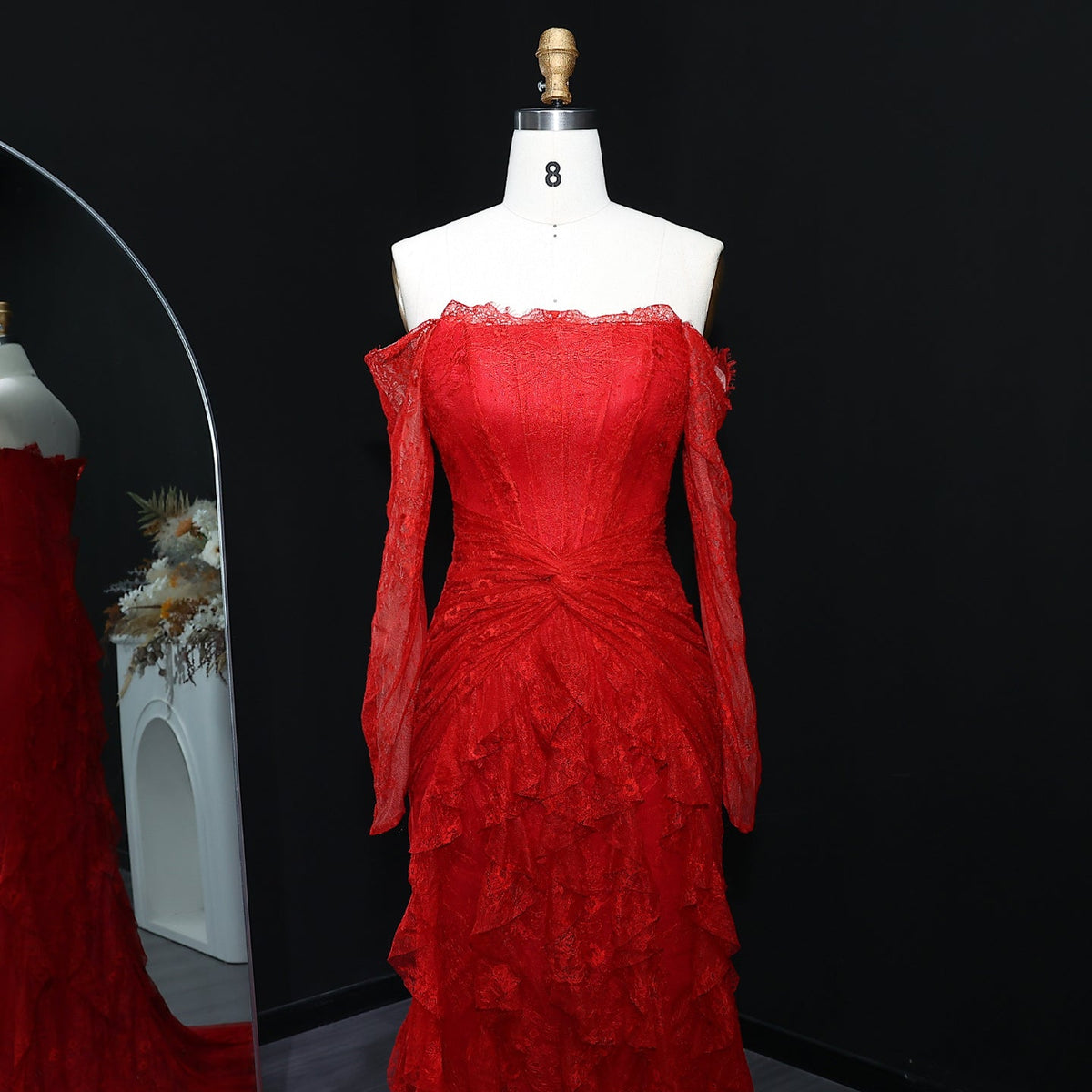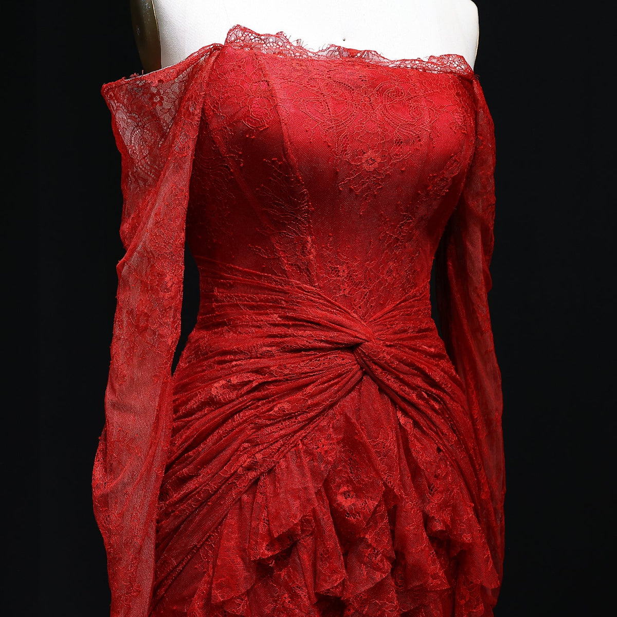 This evening dress is designed for comfort. The lace fabric is soft against your skin, and the breathable material ensures you can enjoy your evening without discomfort. Whether you're attending a wedding, gala, or prom, this dress is versatile enough to fit any upscale event, so you feel confident and stylish throughout the day.