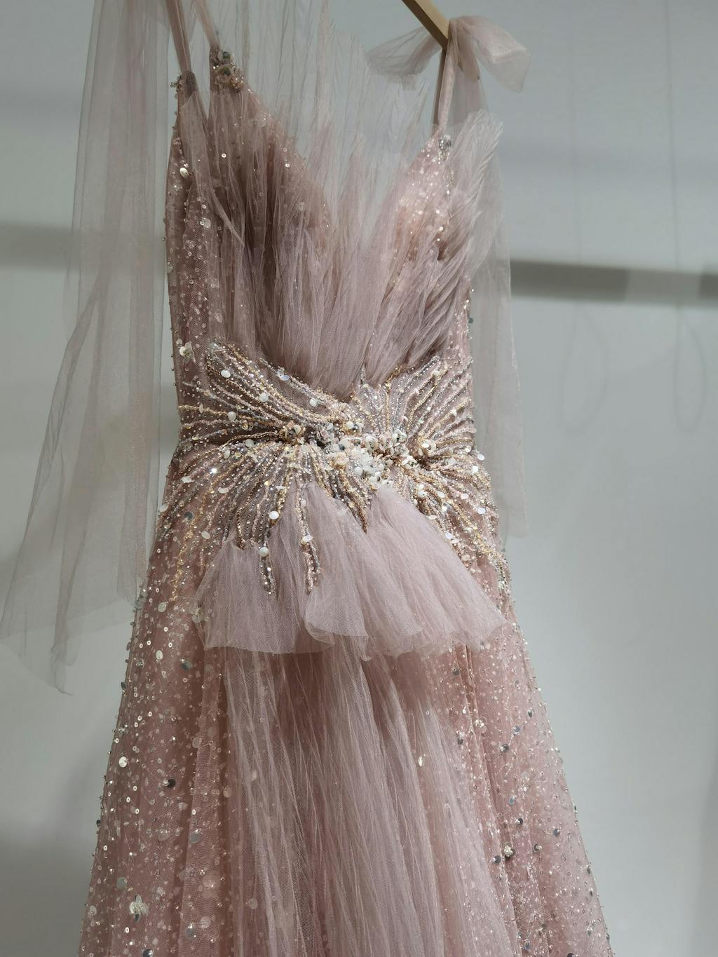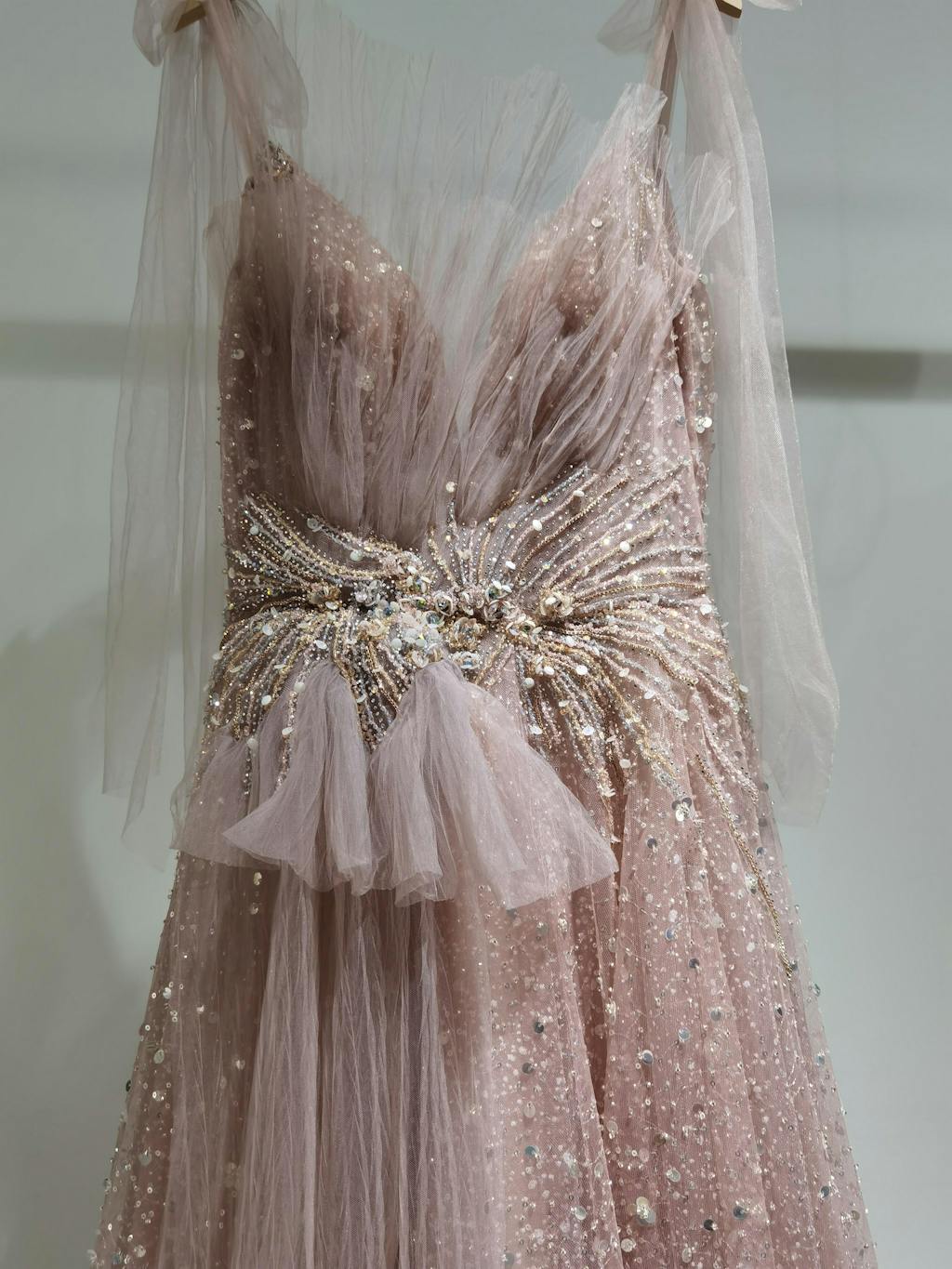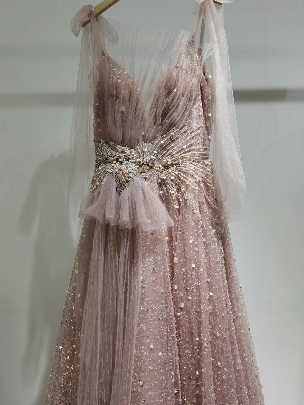 For Sale Luxury Blush Pink Spaghetti Evening Dress SS292L