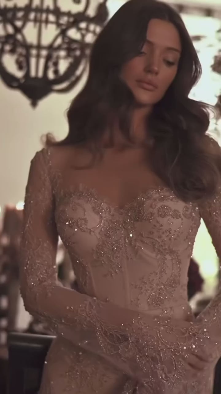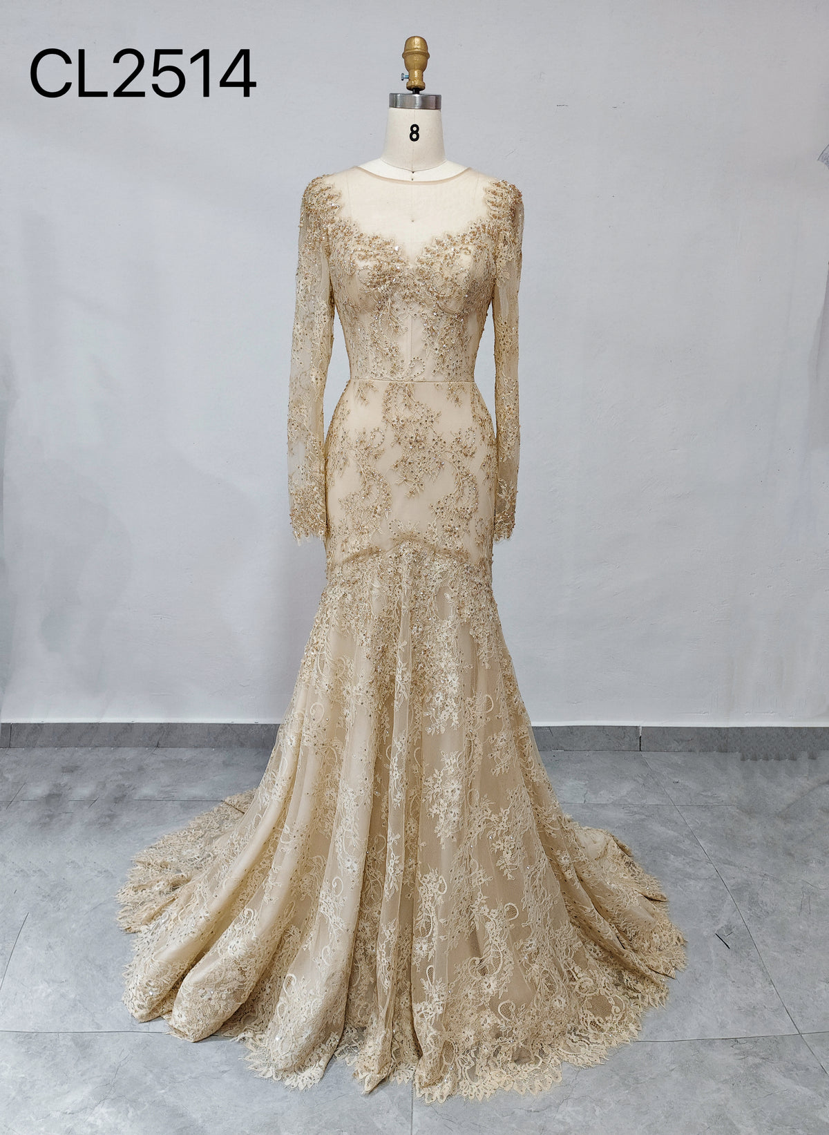 Glamorous Lace Long Sleeves Mermaid Wedding Dress SW122