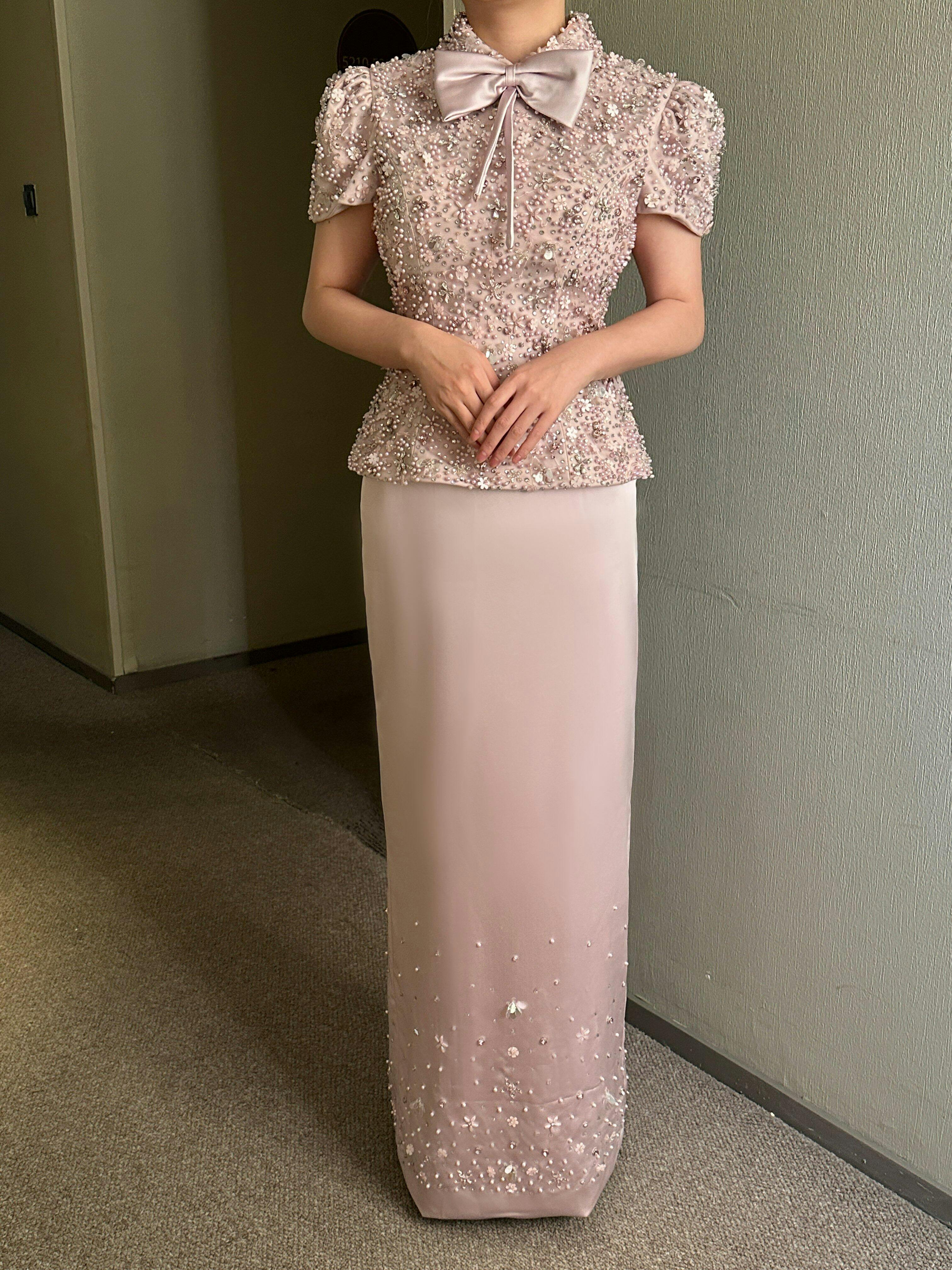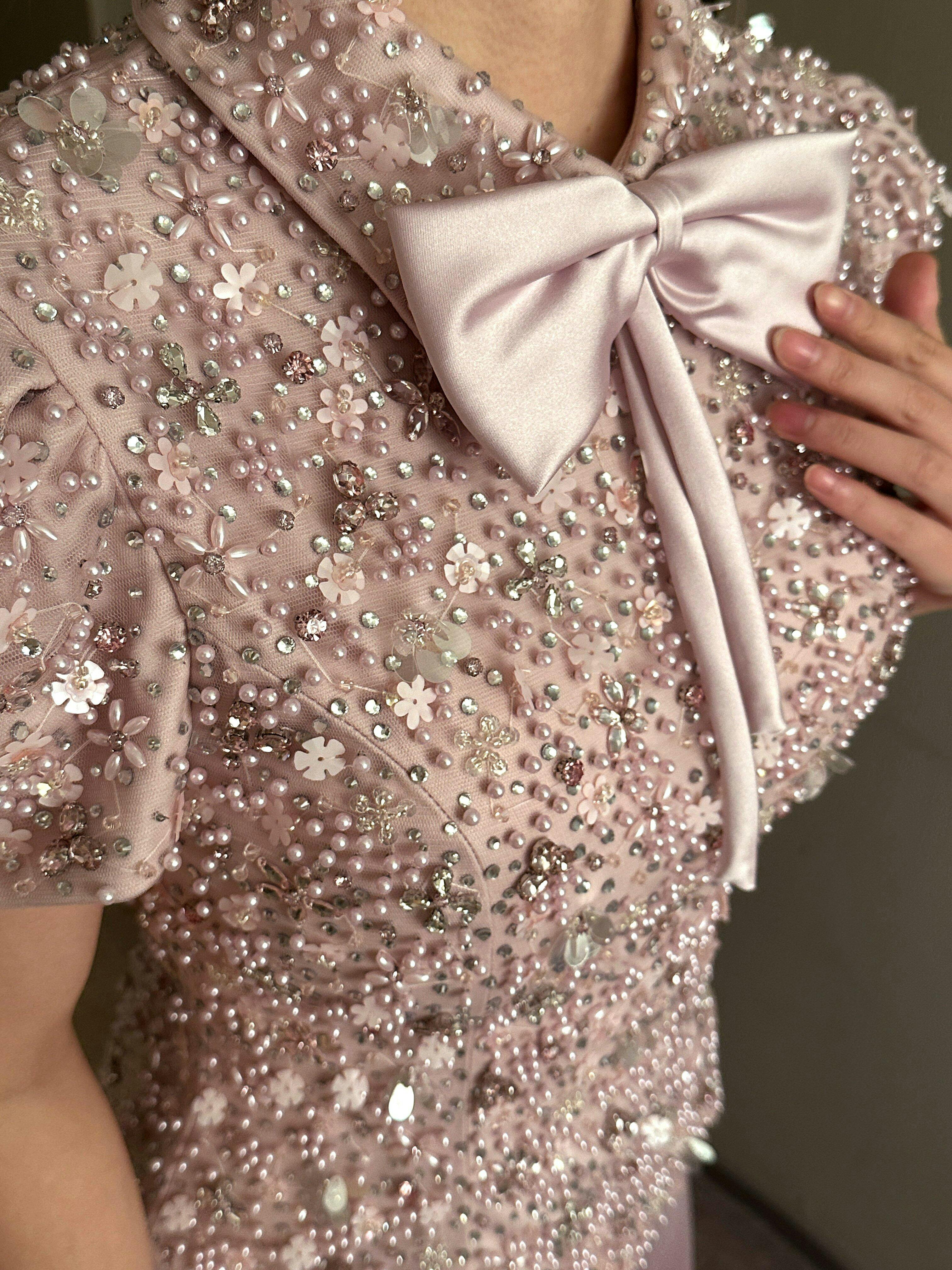 Luxury Pink Sequin Beaded Two-Piece Evening Dress SS547