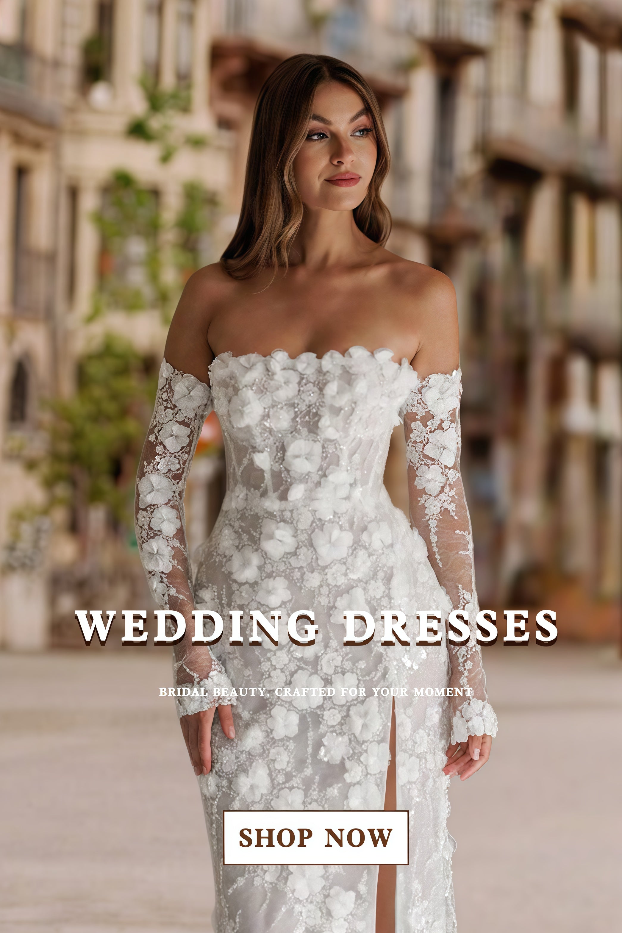 Elegant Sequin Printed Long Sleeve Wedding Dress SW536