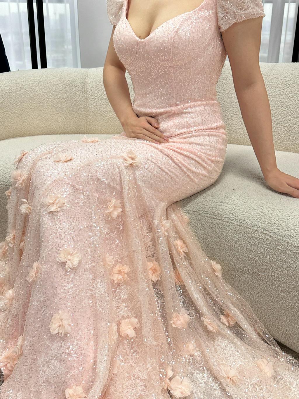 Indulge in timeless elegance with this stunning evening dress, where luxurious pink gradient sequins cascade across a flattering mermaid silhouette. The shimmering ombré effect creates an enchanting play of light, while the dramatic train adds an air of refined sophistication. Perfect for galas, formal celebrations, and red-carpet moments, this piece transforms any wearer into the epitome of grace. The meticulous sequin detailing ensures every movement catches the light, making an unforgettable impression.