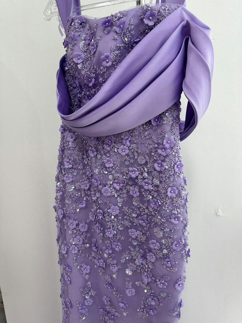 Elevate your evening elegance with the Crystal Lilac Mermaid Dress SS555. Featuring a graceful mermaid silhouette and delicate crystal detailing, this dress beautifully enhances your figure while adding subtle sparkle. The detachable overskirt adds versatility and drama, perfect for making a refined yet unforgettable impression at any formal event.