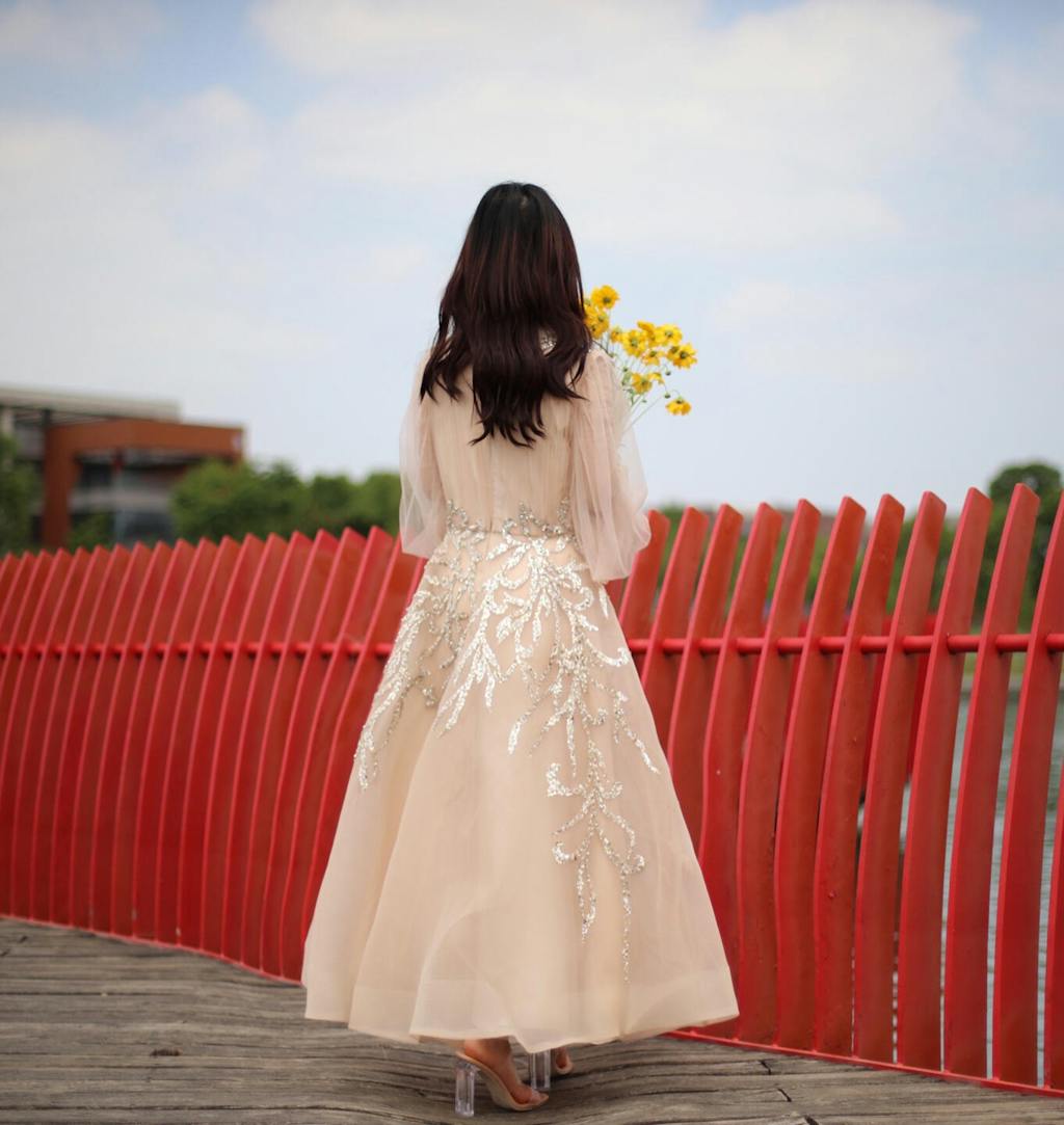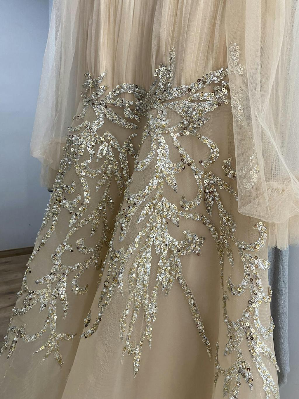 Experience luxurious elegance with the Sharon Said Champagne Evening Dress. With long sleeves and a midi length, this dress is perfect for formal occasions and wedding parties. The Arabic-inspired design adds a touch of cultural beauty, making you stand out from the crowd. Expertly crafted for a comfortable and stylish fit.