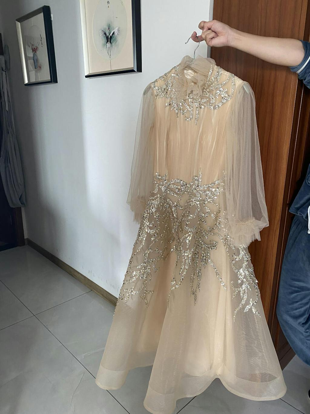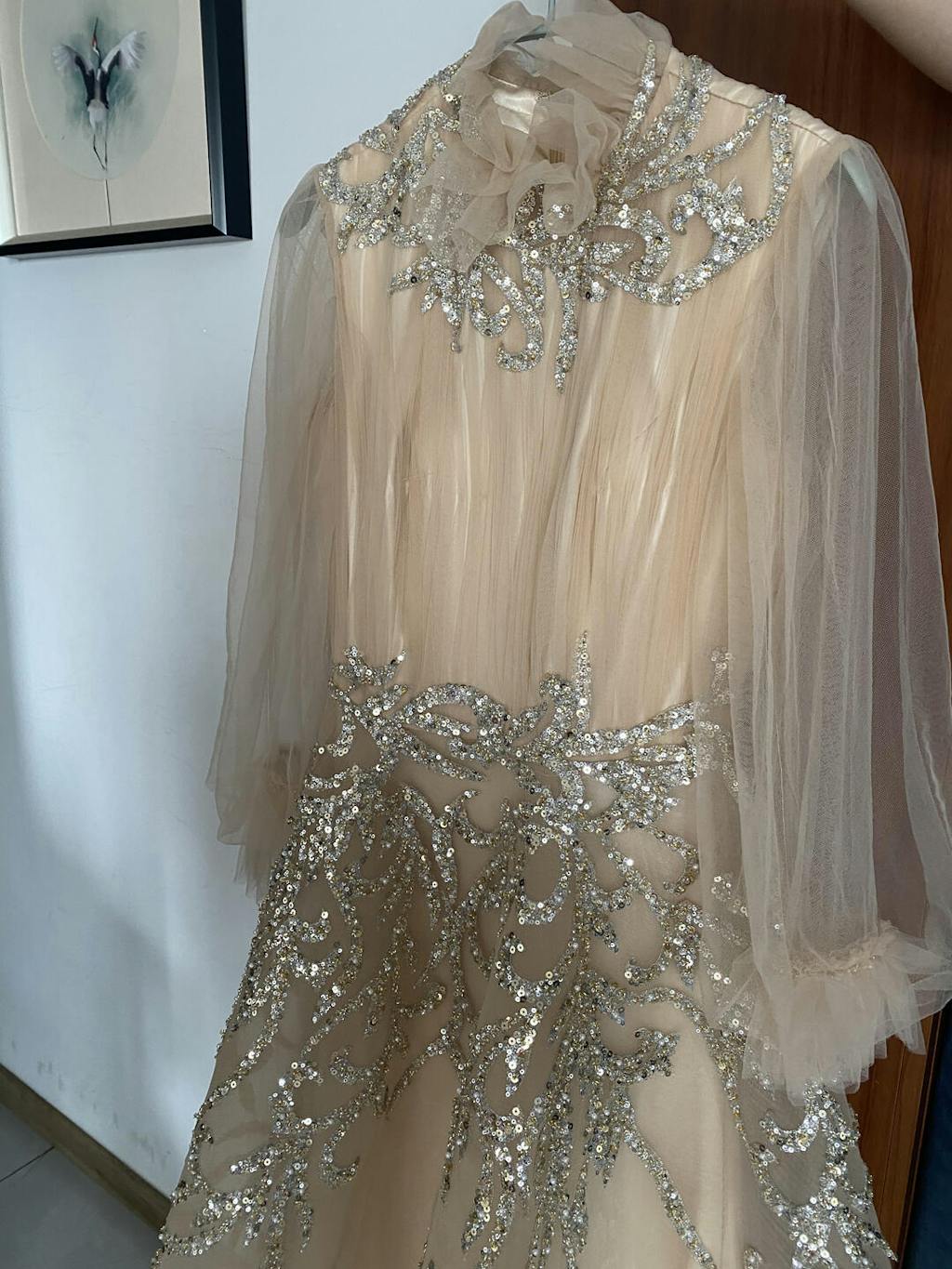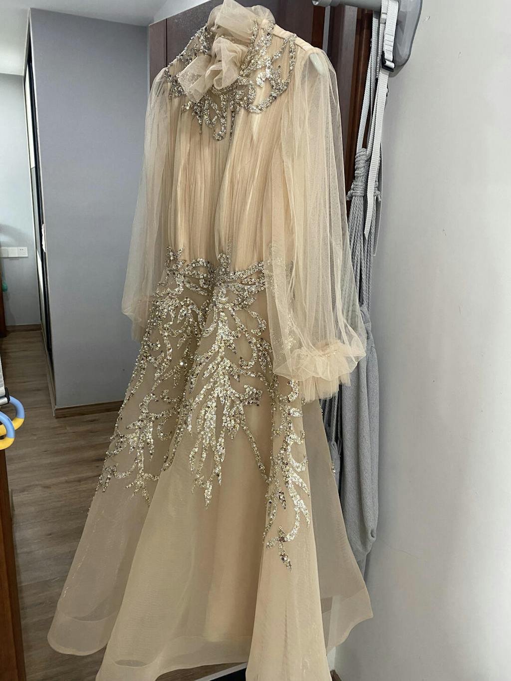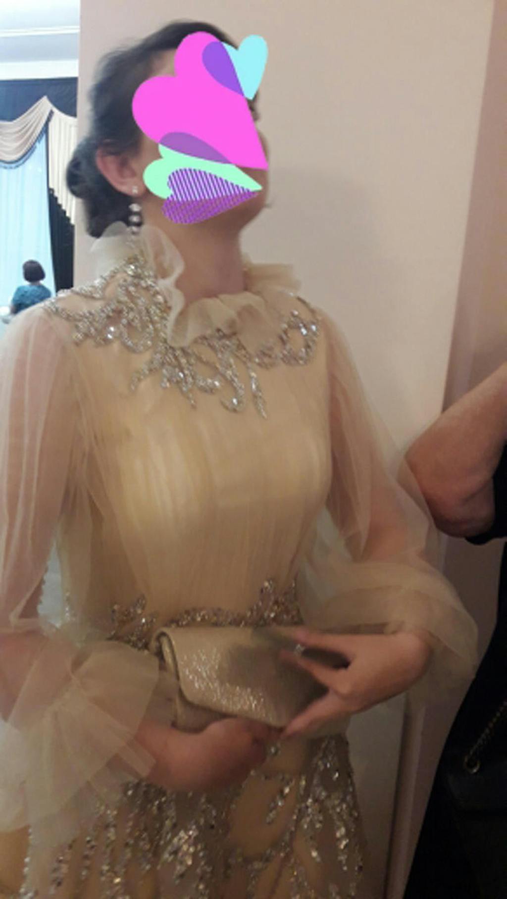Luxury Champagne Long Sleeve Muslim Evening Dress SS496