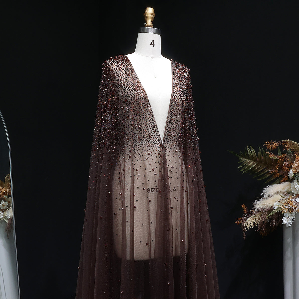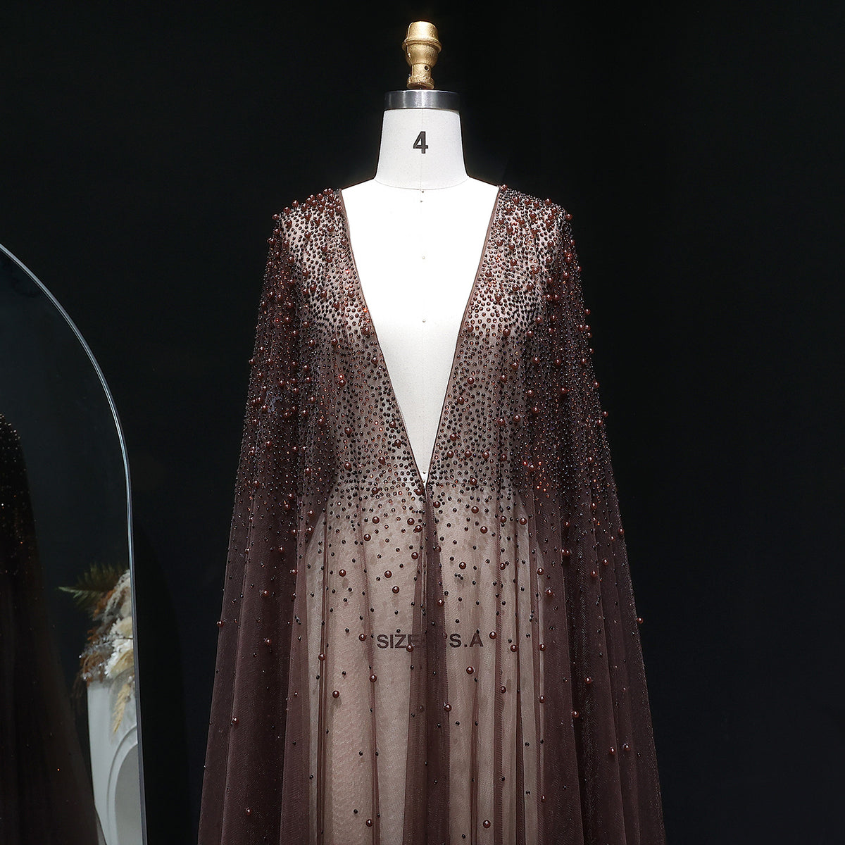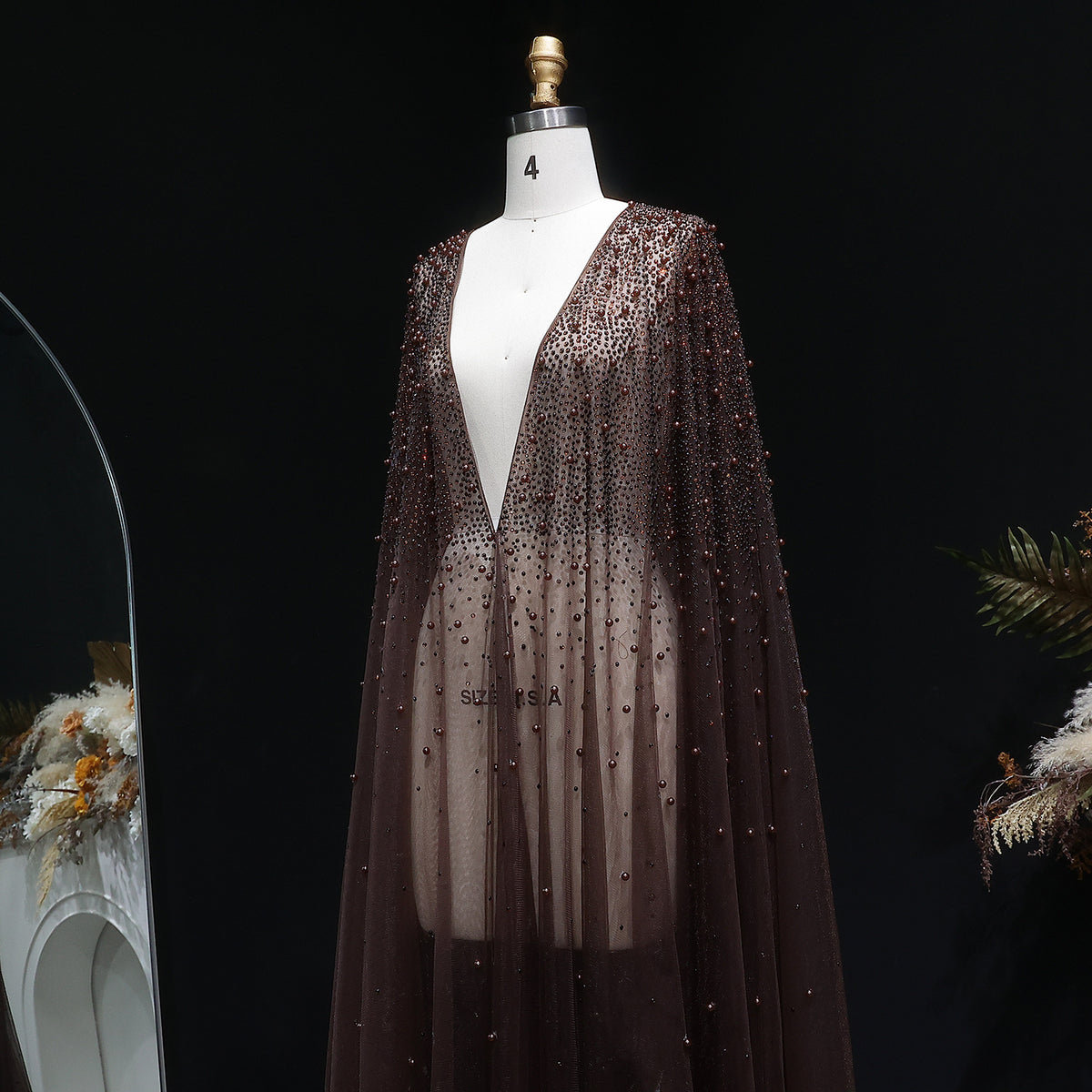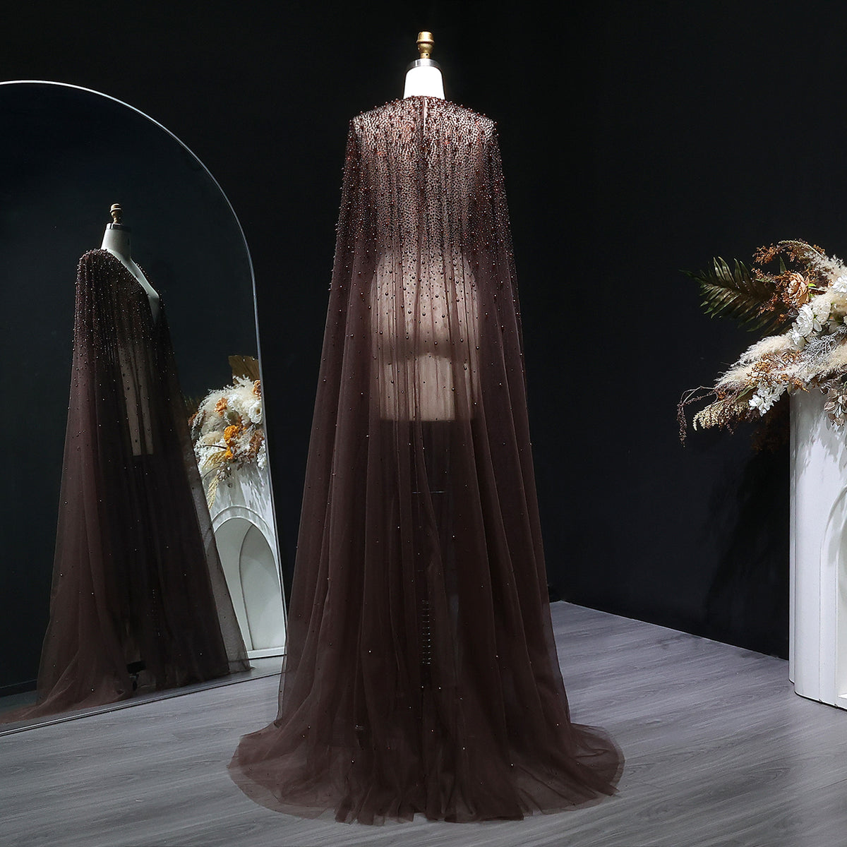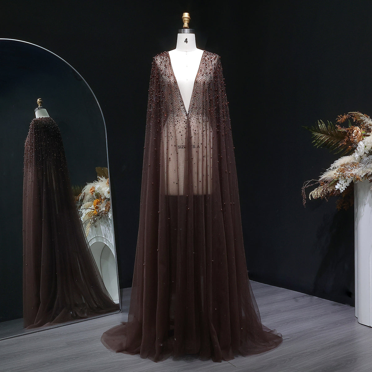Elegant Black Beaded Long Cape Evening Dress SF082