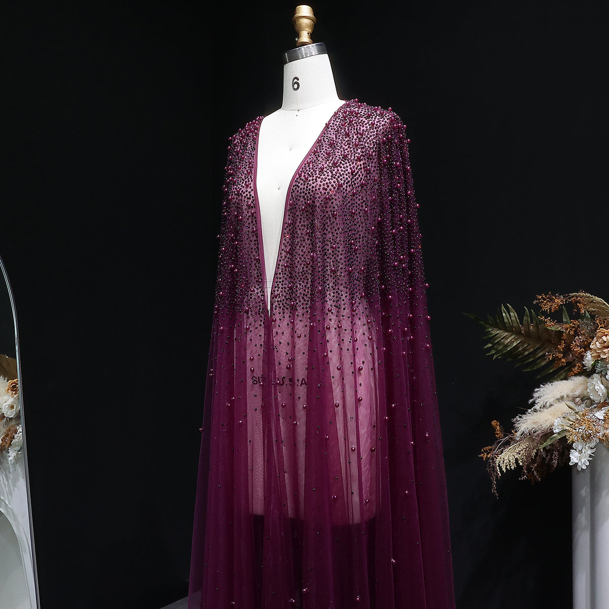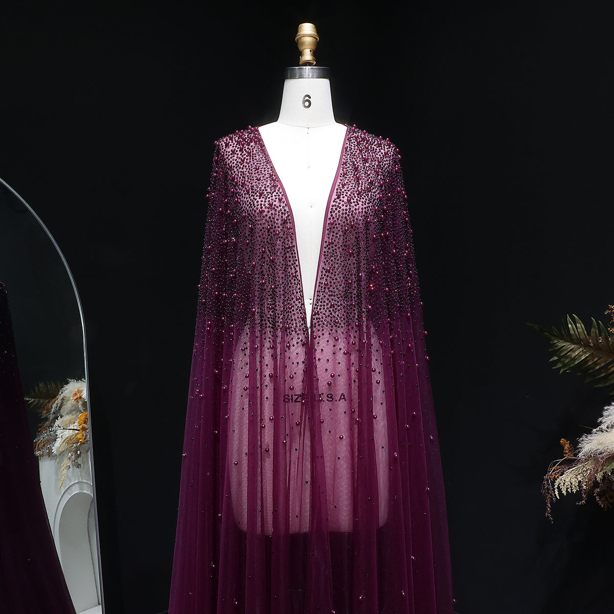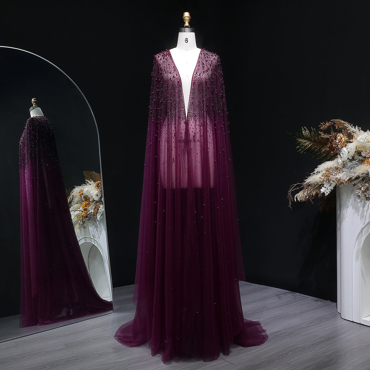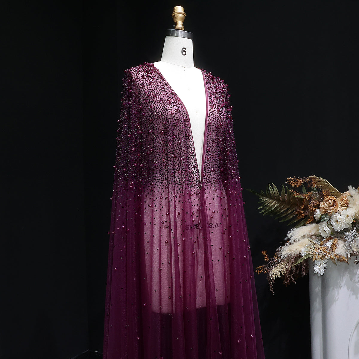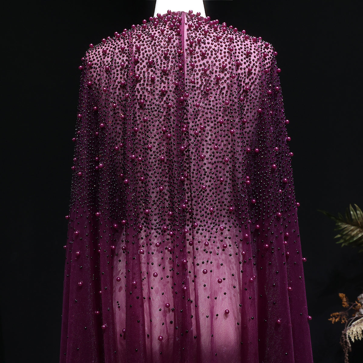 Elegant Black Beaded Long Cape Evening Dress SF082