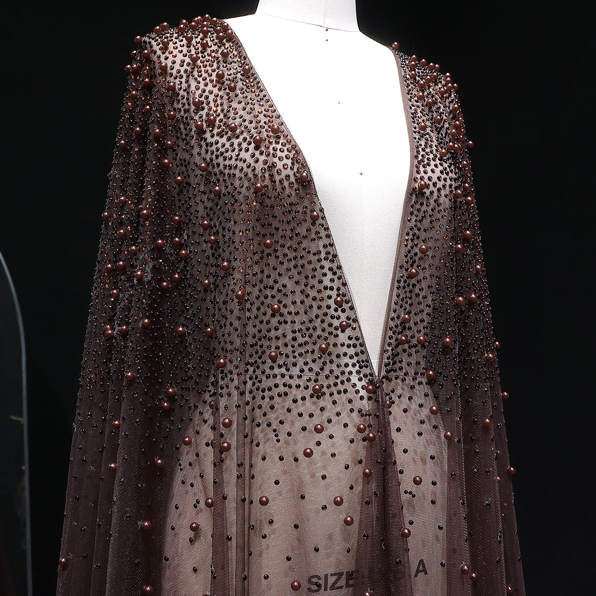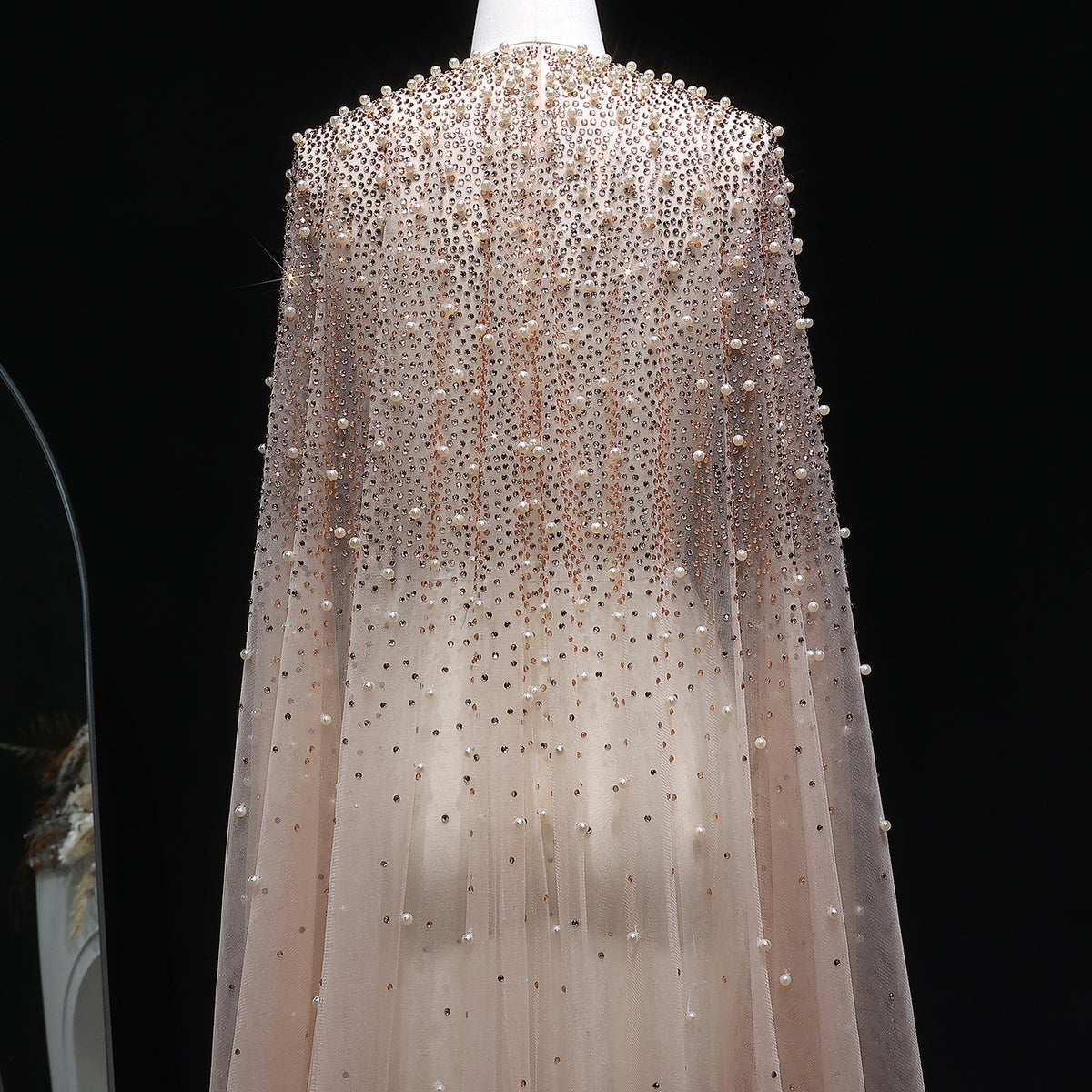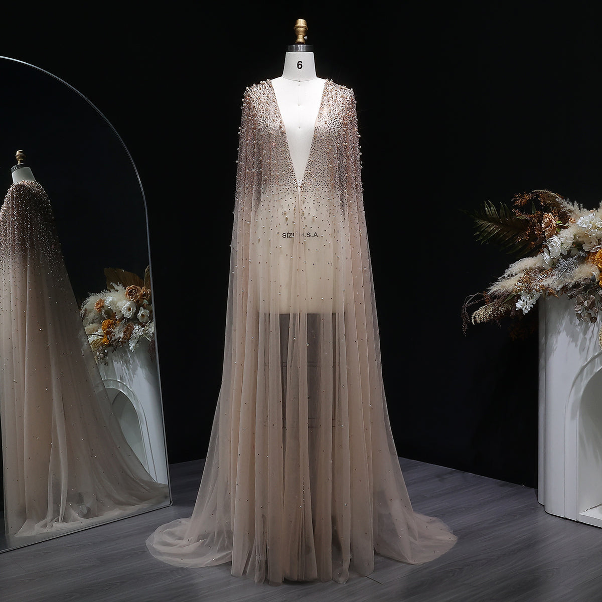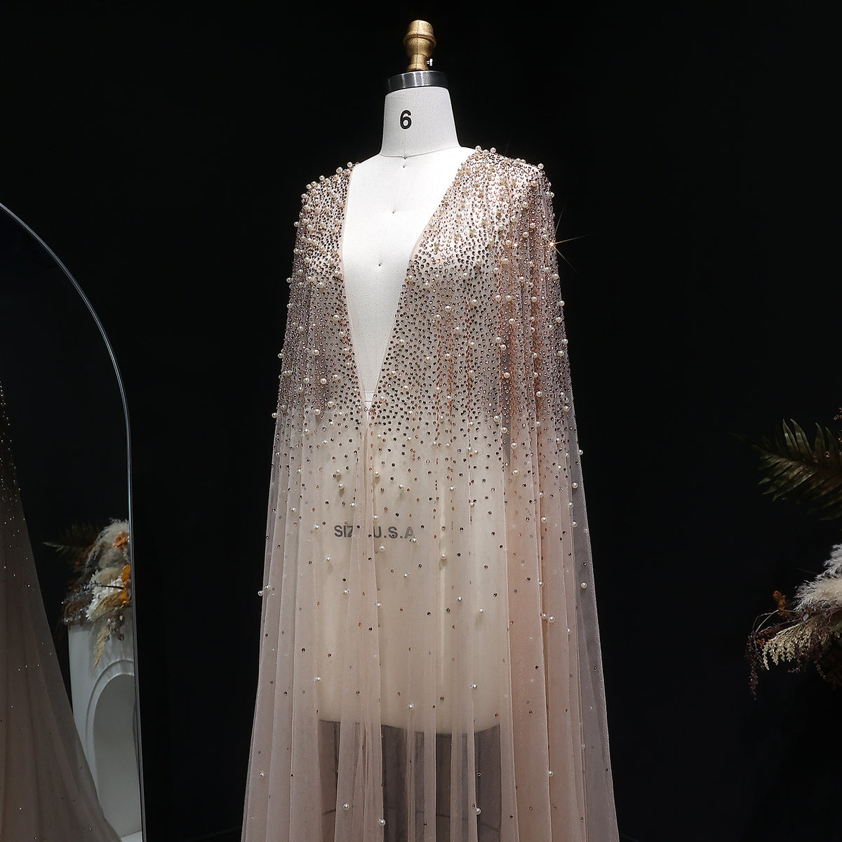 Elegant Black Beaded Long Cape Evening Dress SF082