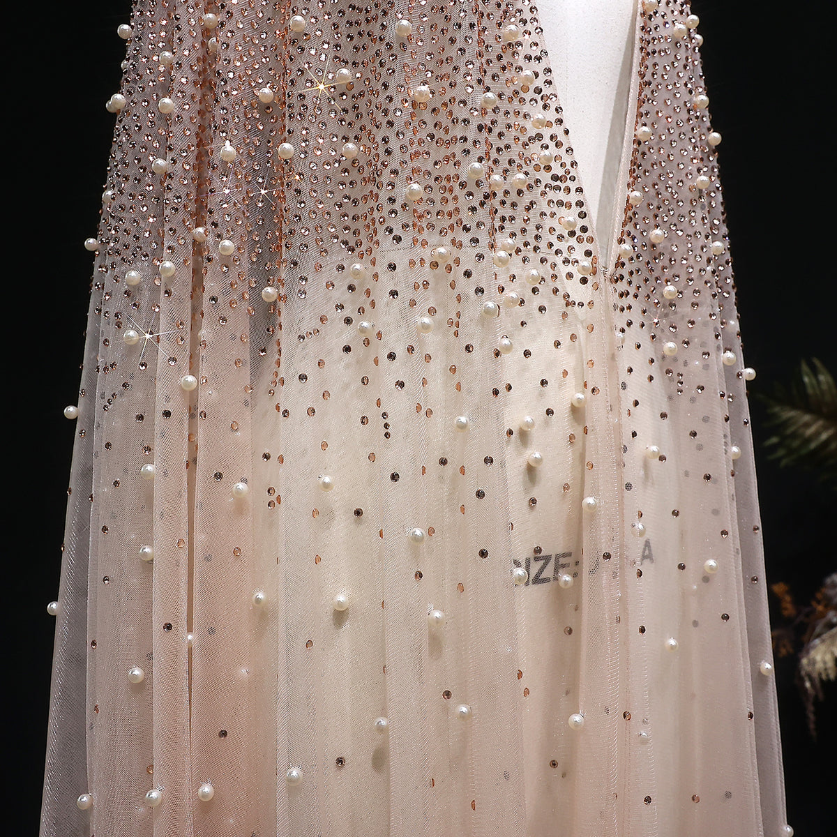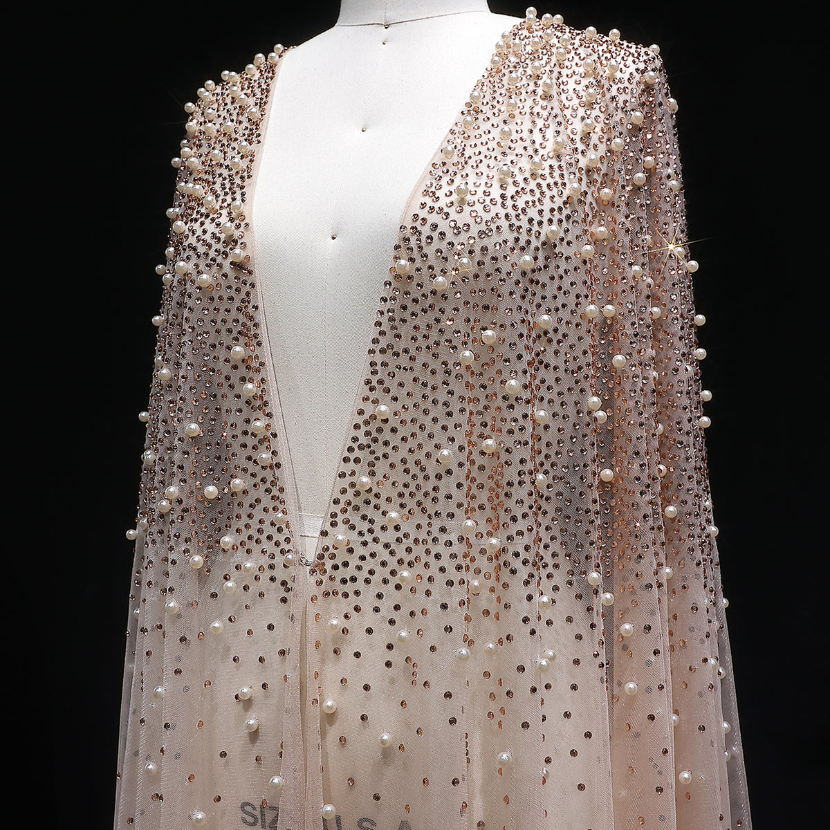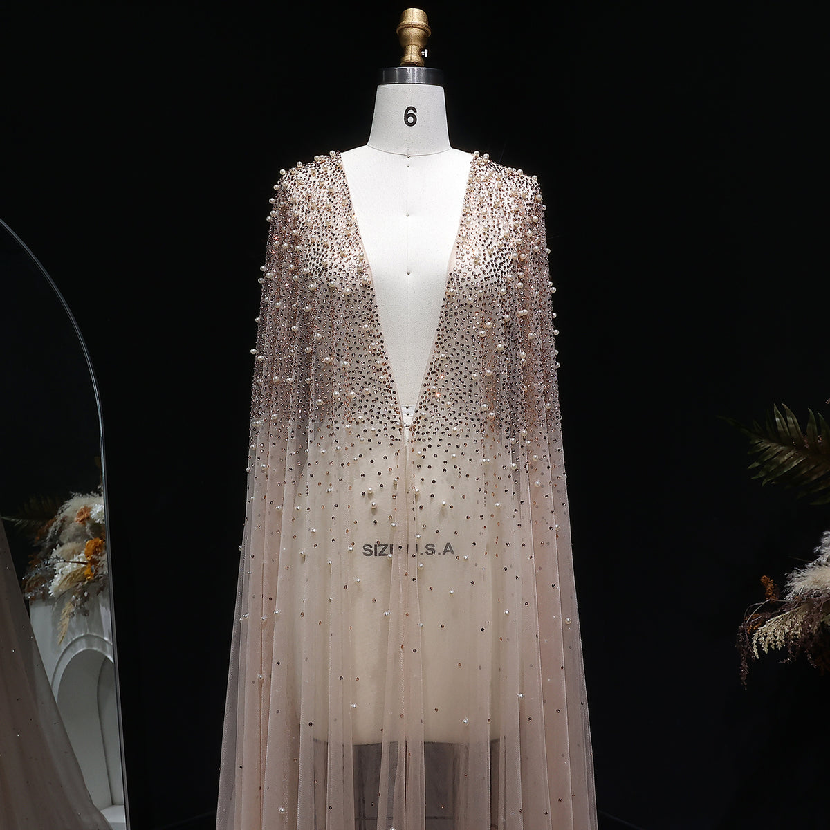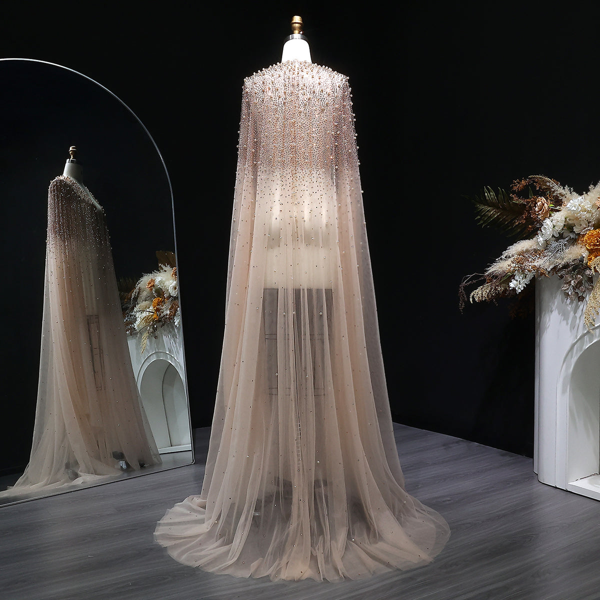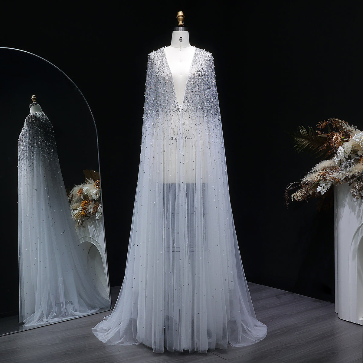 Elegant Black Beaded Long Cape Evening Dress SF082