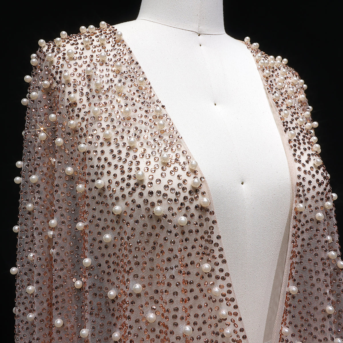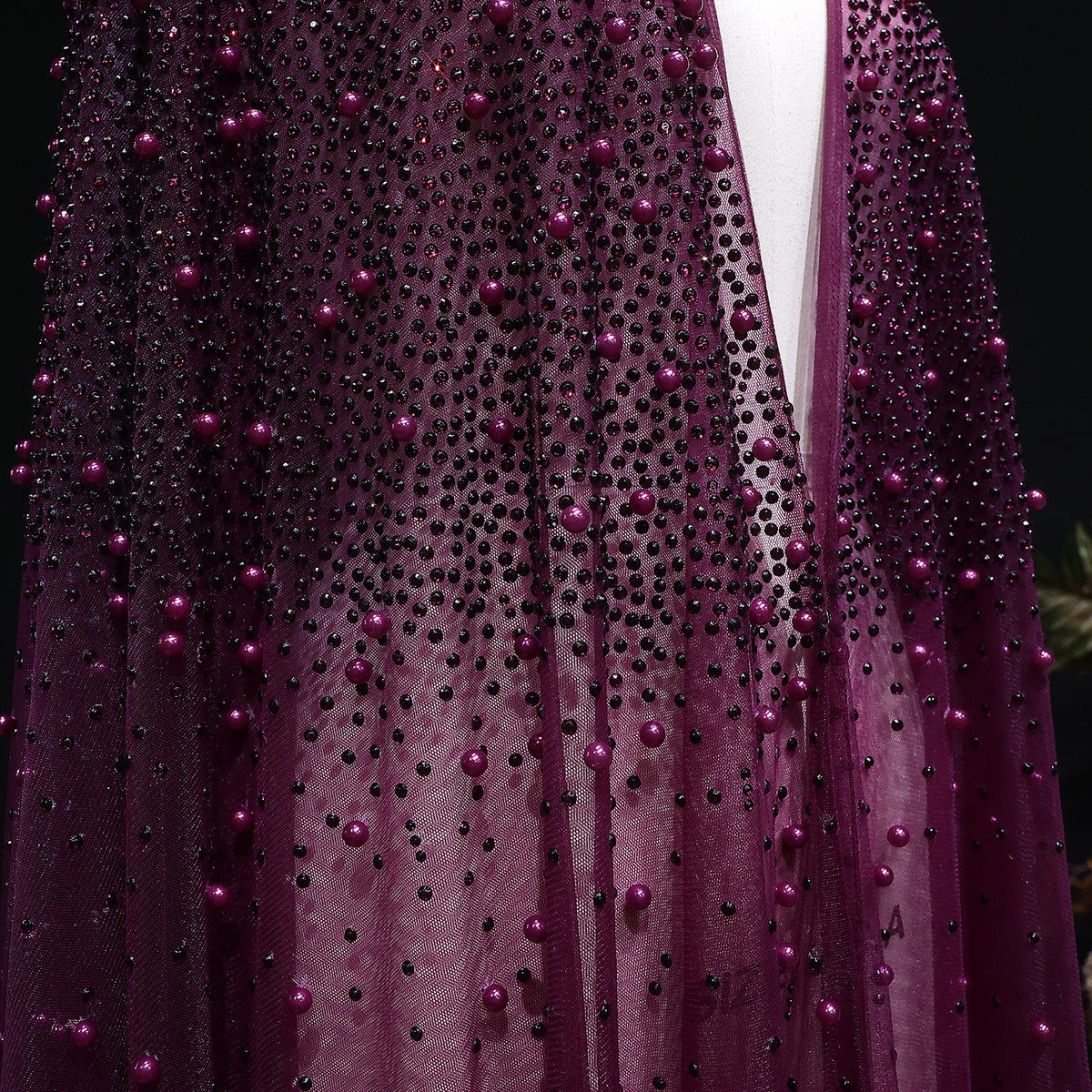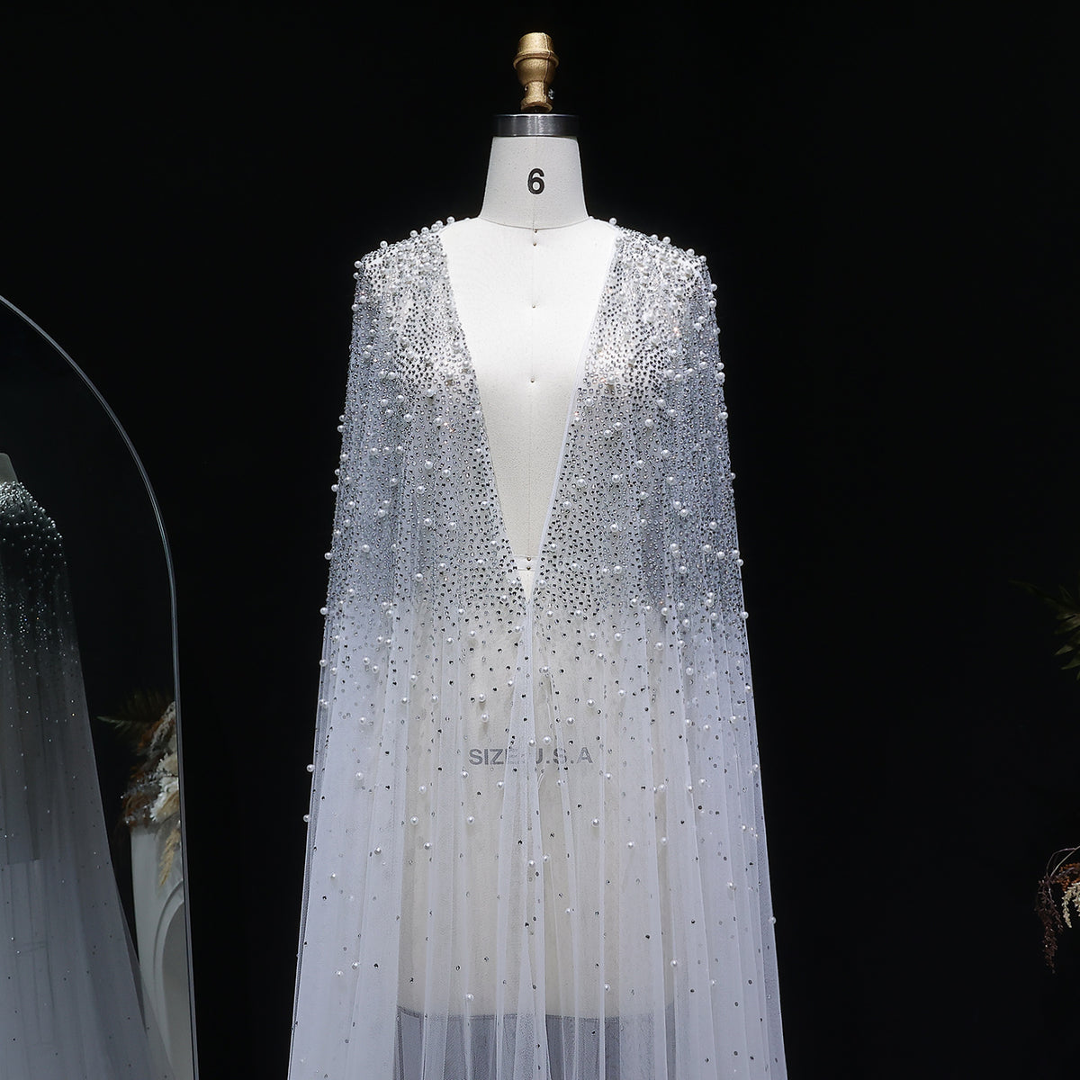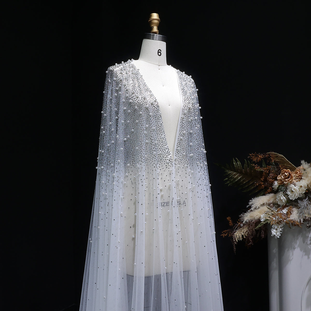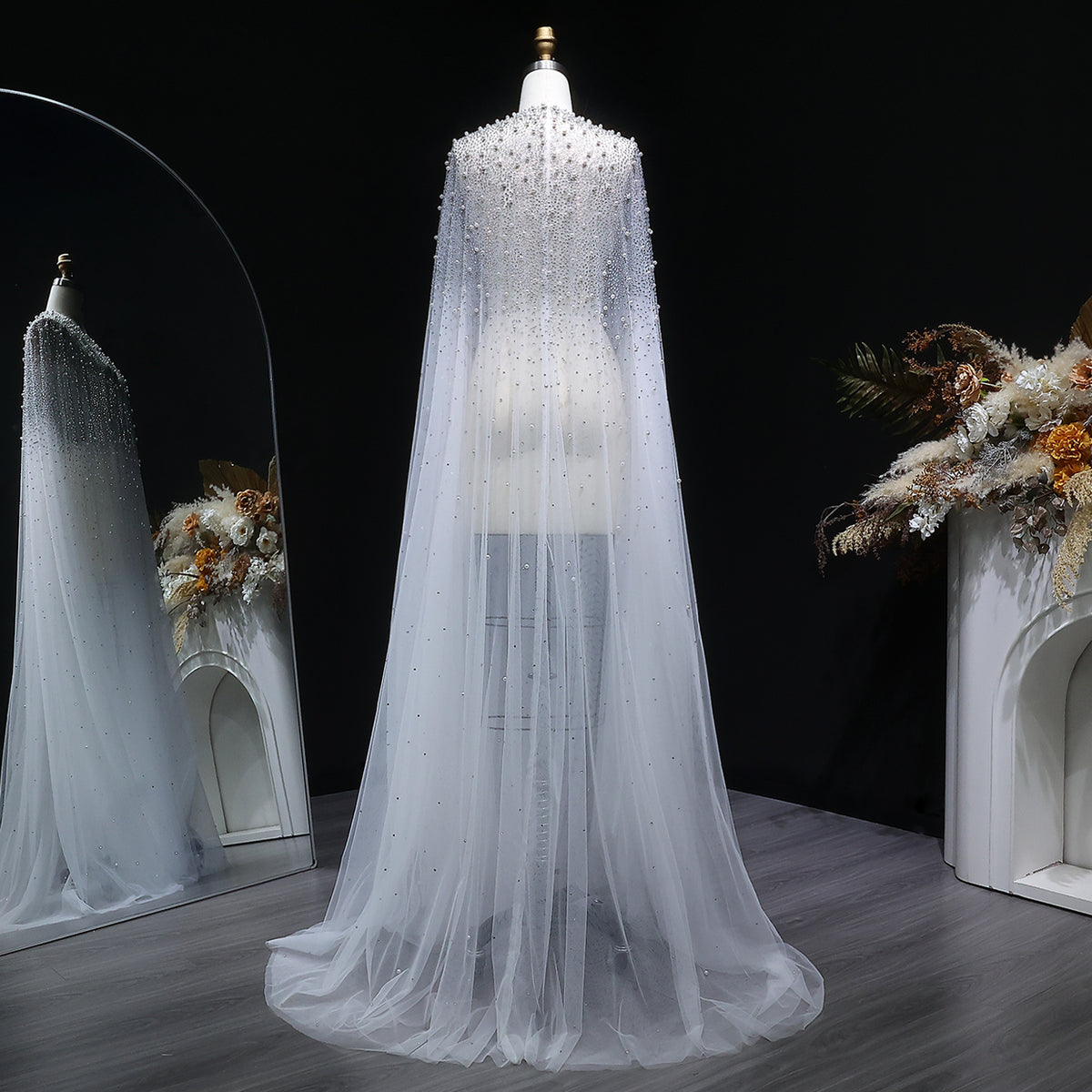 Elegant Black Beaded Long Cape Evening Dress SF082