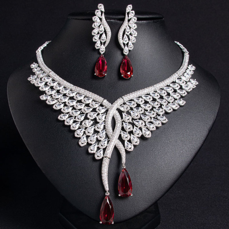 Versatile Teardrop Zircon Wing Earring and Necklace Set JW031
