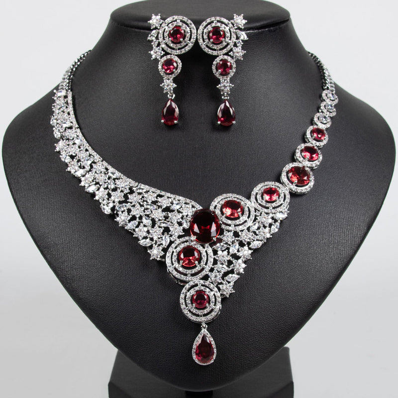 Simple and Versatile Ruby Necklace Earring Set JW010