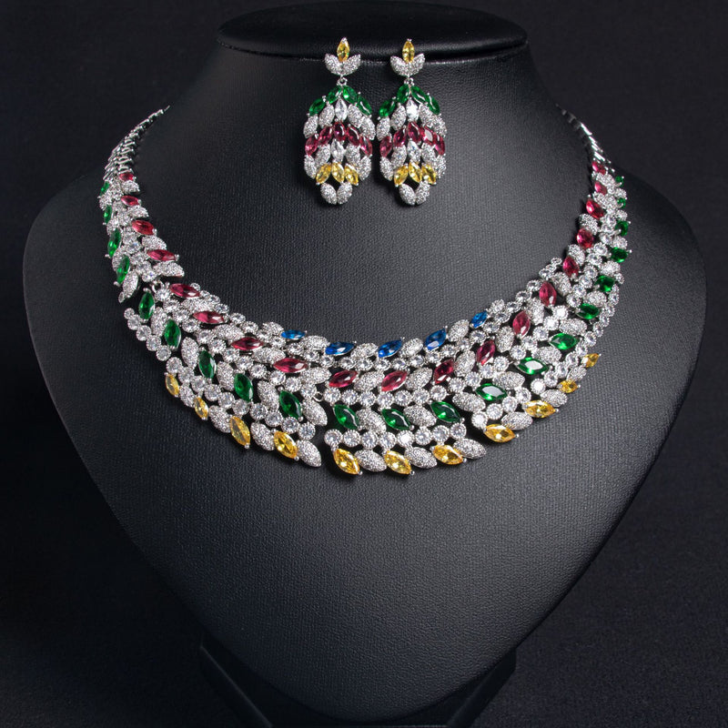Luxury High-end Floral Zircon Necklace Set JW011