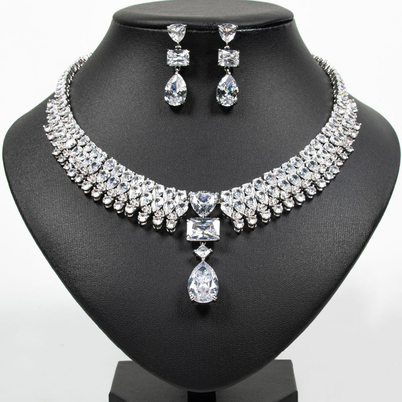 Luxury Teardrop Zircon Necklace Earrings Jewelry JW001